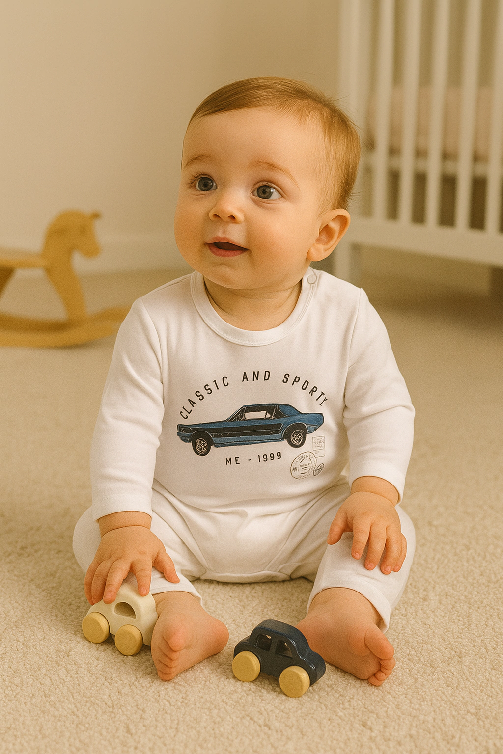 Este body es una excelente opciòn para los primeros meses de nuestros bebès. El algodòn es suave y delicado favoreciendo el cuidado de la piel y brindando màxima comodidad.