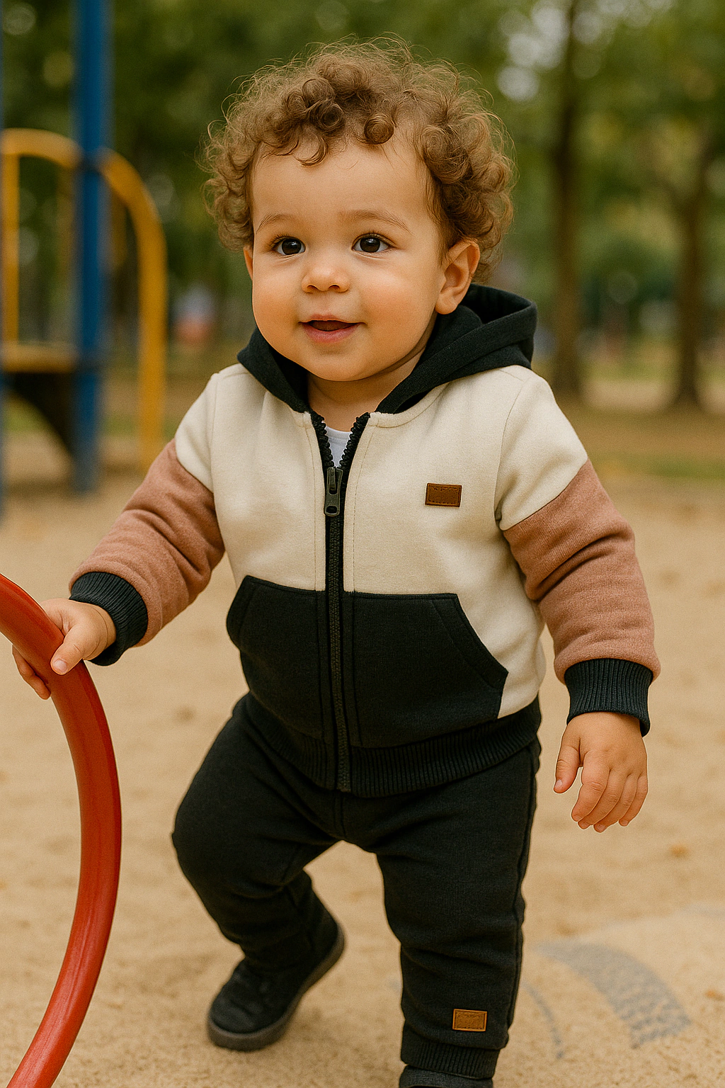 Un look moderno y cómodo para los más pequeños. La mezcla de colores y texturas no solo es elegante, sino que también permite múltiples combinaciones con otras prendas. Perfecto para el uso diario, este conjunto es ideal tanto para salir a jugar como para disfrutar de momentos en casa, asegurando que los pequeños luzcan siempre bien vestidos y cómodos.